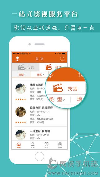 3、摄影摄像师,接单不完,活做不完,平台面向大众影视文化生活,接活只需一步,并定期开放好莱坞影视制作大师班,影棚、灯光、器材、神队友,一键预约。