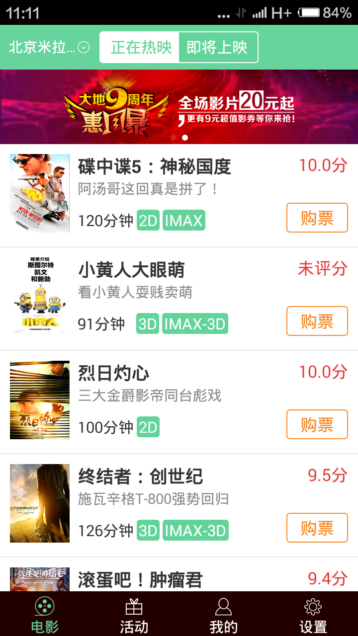 大地影院团购安卓版app更新日志:
