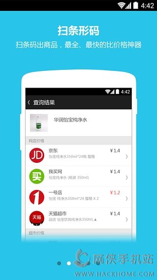 购物拍拍安卓版app:是一款商品价格查询与比价的手机应用软件,你只需使用购物拍拍手机客户端扫面商品的二维码,就能够迅速查询到相同商品在各大电商网站的价格。在线比价,选择性价比最高的电商网站购买。
