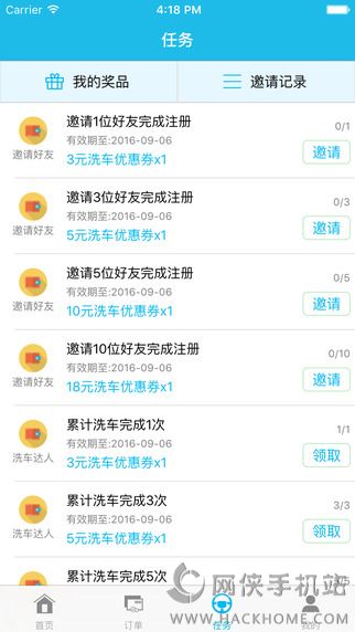 1.【玩任务领优惠券】邀请好友、完成洗车都能得到面值不同的抵用券。