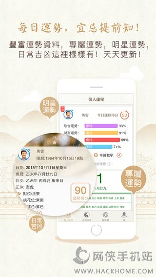 7、实用工具:传统黄历择日,风水罗盘,开运动态壁纸,手机号码测算,起名解名等精品应用;