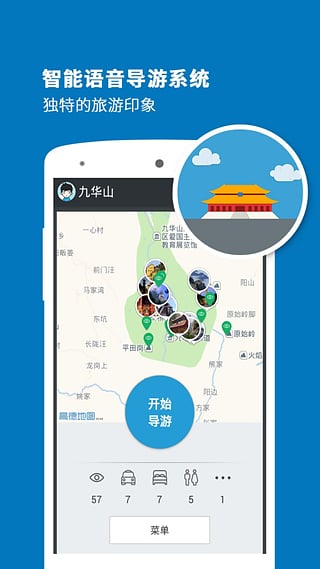 九华山导游安卓版app:是一款非常实用的导游软件,带有圈自动化的智能语音导航系统,真人语音播报功能,为您的九华山旅行增添专业的导游。只要打开九华山导游app,全程自动导航,指引你科学合理的游览九华山。将九华山风光一览无遗。
