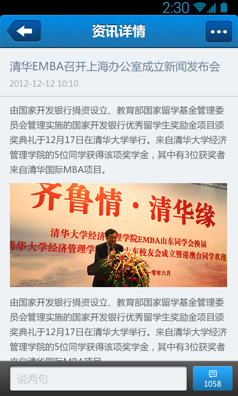 1.展示清华EMBA资讯、课程讲座、校友商讯、活动的相关信息;