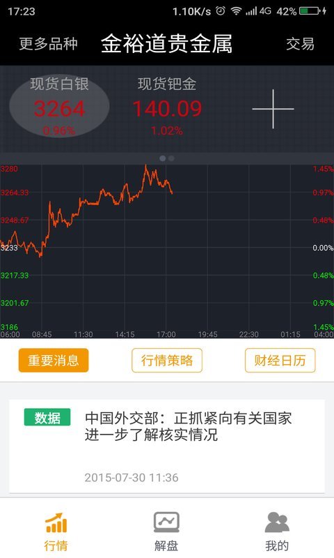 1、集行情、新闻资讯、交易于一体,软件提供现货白银,现货铝,现货铜等市场行情报价数据。