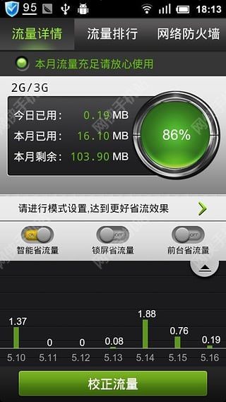 3.网络流量监控-实时统计手机GPRS流量,避免超额使用产生高额费用。