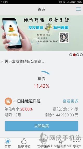 友友贷安卓版app:是一个非常值得信赖的金融理财类平台,精选优质理财产品,为投资者打造最安全可靠、最权威性的投资理财平台。友友贷注重投资的安全性,设置了多重风险保障措施,严格控制投资的风险性,确保投资者的资金安全。