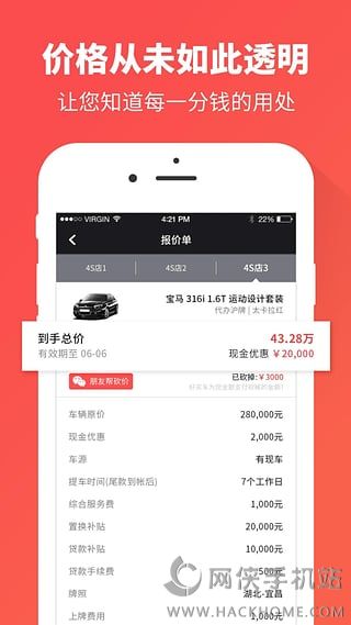 2、【详实报价单】总价报价单,车价优惠、是否有现车(没现车,要写提车时间)、购置税、保险费用、上牌信息(上牌地点和费用)、杂费、装潢赠送等一目了然。无虚报、零猫腻,不加价!