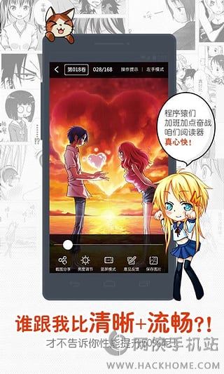 2.在线+离线阅读,清晰画质,在线+离线阅读,从此告别蜗牛速,没有网络也能想看就看;独特的图片处理技术,节省更多空间,高清晰低内存的完美漫画,带给你别具一格的阅读体验;