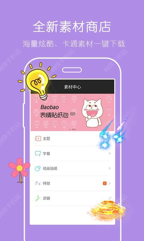6.独有的视频美化素材中心,各类卖萌、唯美、恶搞素材不断更新;