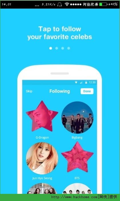 5、使用者下载VAPP后可通过NAVER帐户快速登陆,打开「关注明星」功能后就能及时收到喜欢明星的节目提醒。VAPP今后还将陆续推出可确认直播日程的「Upcoming」,以及偶像和粉丝间的互动指数等;