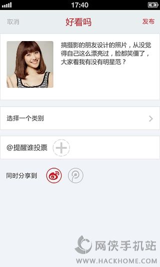 好看莫要藏起来!你可以将网友的投票结果分享到微博、微信,向小伙伴们秀出你的“好看指数”,让他们羡慕嫉妒恨去吧!
