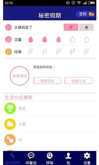 秘密假期是一款关于女性经期管理的手机软件。可以显示女性月经周期、受孕期、排卵期等数据及预测未来经期,并将数据总结备份至云端永久保存。秘密假期,能够帮助每一位女性朋友更好的保护自己的生理健康!大家快来下载吧!