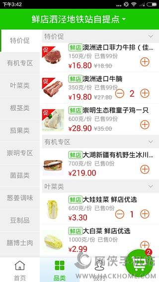 2、选择需要的生鲜添加到购物车;