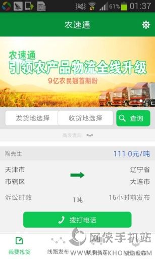 农速通app安卓手机版是一款热门的物流运货类手机app,通过平台能够为车主找货,同时货主也能通过平台来找车,或者是跟其他货主平车,节省货运成本,这样双方都不需要通过中间渠道去找物流了,省时省力省钱,喜欢的亲们赶紧来下载吧!