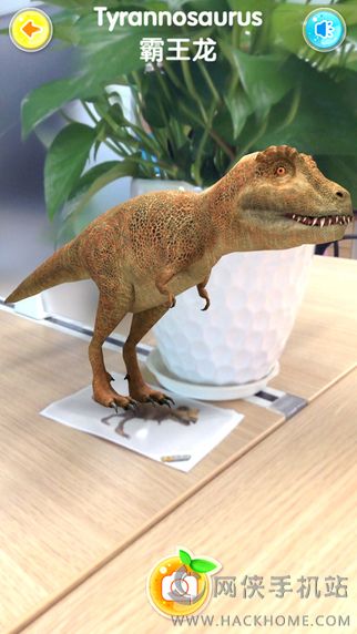 2、只要用手机轻轻扫描一下卡片,恐龙即可变成3D立体形式,在孩子面前“复活”;