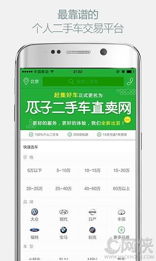 瓜子二手车直卖网下载安卓版由赶集好车网改名的,提供海量靠谱的二手车,各种车型都有,100%个人二手车,专业的检测人员为您检测,让您买到满意的二手车。