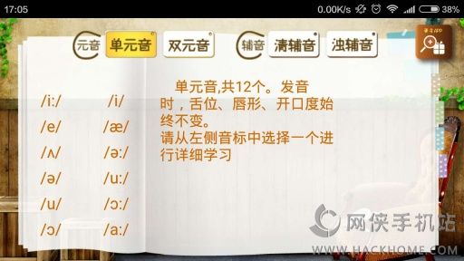 音标课堂app安卓手机版是一款学习英语音标的手机软件,操作简单,界面简洁,纯正地道的美式发音,还有口型发音视频,让您学到地道英语,正在打基础的亲们赶紧来!