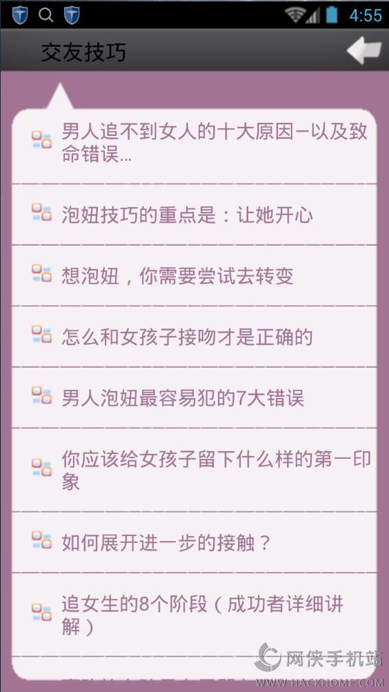 搭讪秘籍app安卓手机版是一款社交交流软件,帮你逃离没有共同话题的尴尬,让你学会说话,让生活更轻松哦!有需要的朋友们赶紧下载吧,里面有丰富的沟通技巧,搞笑的幽默秘籍,让你生活不再枯燥无味哦!