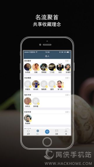 2、名人,用户可以在名人堂查看古趣名人,并且关注他们;