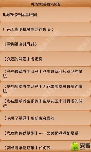 教你做美食煲汤app是一款在线学习煲汤的手机软件。用户通过它可以学习各种煲汤的方法,各种食物怎么混搭等。每日有健康文章、美食资讯可以阅读。不会煲汤的朋友,快来学习吧,简单易学。会煲汤,生活更健康!