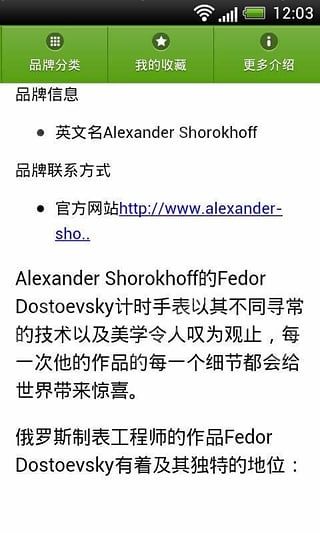 世界名表品牌大全app是一款讲述世界名表的手机软件。用户通过它可以了解整个世界手表的发展历史与文化,了解手表行业的发展动态等。通过它,用户可以去接触世界名牌手表,了解它的起源与发展,上百个世界名表品牌都有详细介绍。喜欢的朋友快来下载吧!