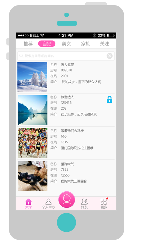 2.人人免费创建个人房间,分享美好,建立自己的粉丝群体,同小伙们互动娱乐;