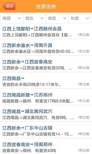 3、轻松发布货源信息与车源信息,支持根据出发地、到达地进行车辆信息和货源信息的快速筛选;