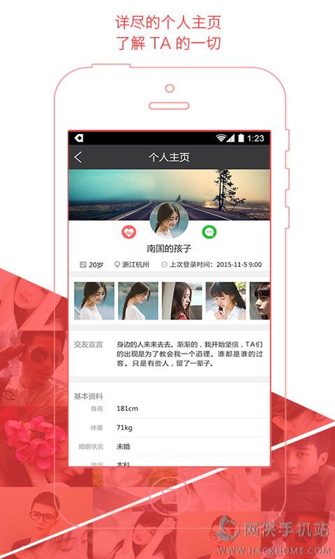 3、免费下载、快速注册、贴心推荐、自定义搜索、畅快热聊、创意表白;