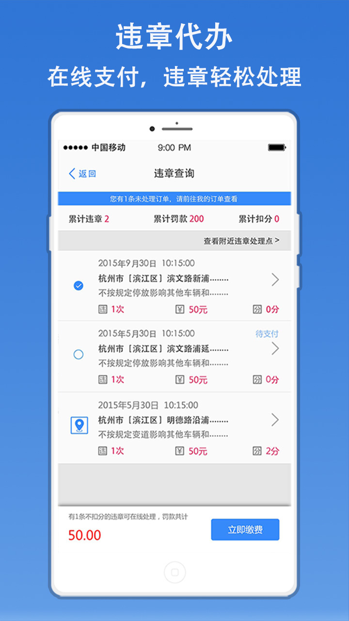 3、【违章查询】支持全国数百城市的违章查询,市区、高速、异地都可查,还有违章及时、准确提醒!