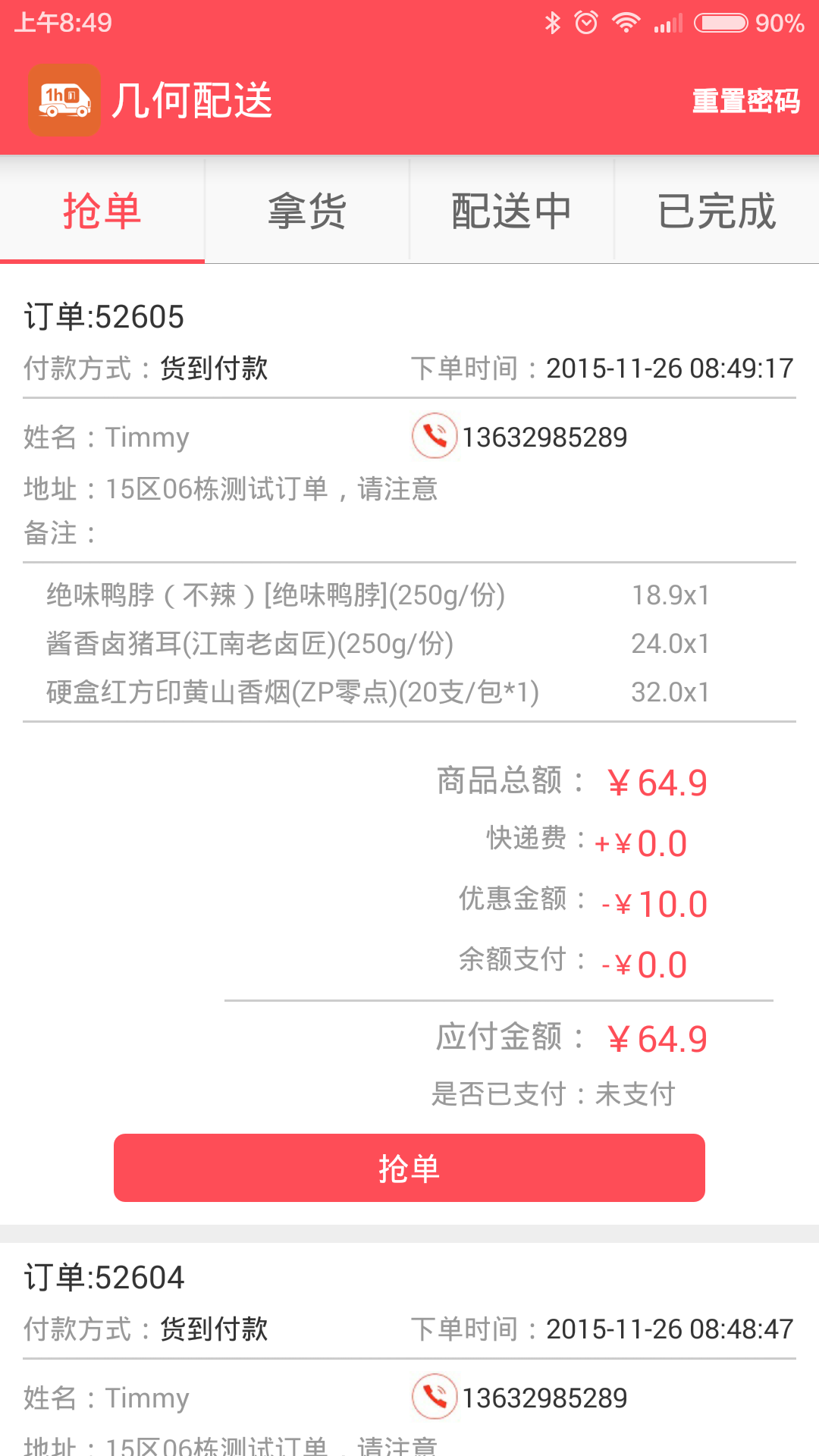 1.抢单:用户在几何社区下单,物流合伙人第一时间点击抢单;