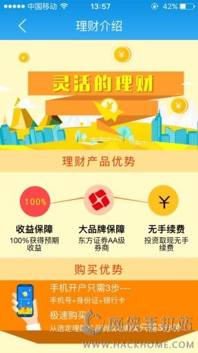 2、操作简易:精简后的开户流程更易于操作,为您贴心选择了单一的营业部。您只需“实名验证、开立账户、开户确认”三步即可完成开户;