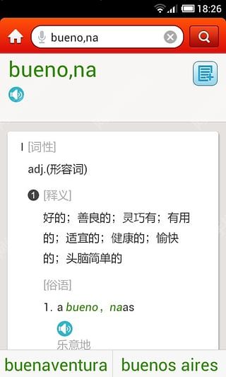 4、词汇和例句发音:西班牙语和汉语词条、西班牙语例句均配优质清晰发音,让你西班牙语脱口而出;