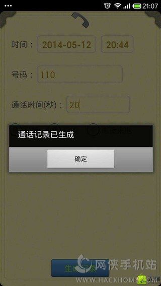 2.可以自己设置电话号码和通话时间和通话时长,然后点击生成记录;