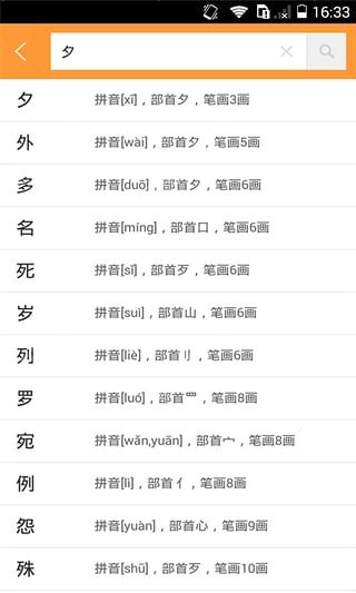4、汉字解析:每个汉字都包含了详细的解释,如拼音、五笔、笔划、部首、结构等;