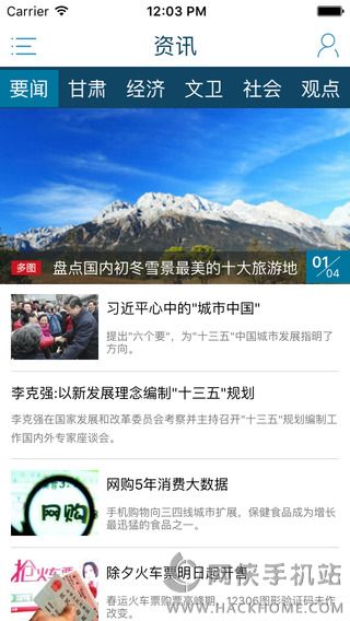 2、资讯”板块有要闻、甘肃、经济、文卫、社会、观点等子栏目供用户选择,全方位、多角度为用户提供新闻资讯;