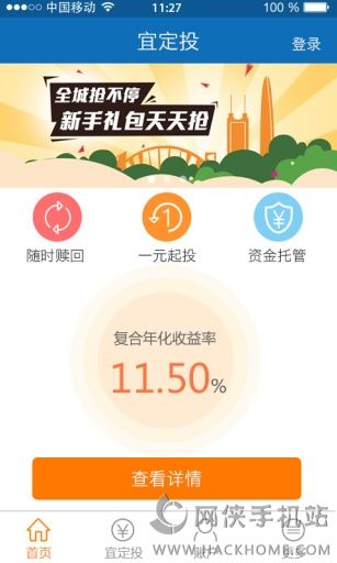 2、灵活存取,投资门槛低,宜定投全天候24小时可充值、赎回、提现,且一元起投,门槛极低。用户可通过平台资产高流动性的二级市场,实现债权轻松赎回,随时可以申请提现,当日申请提现,当日到账;