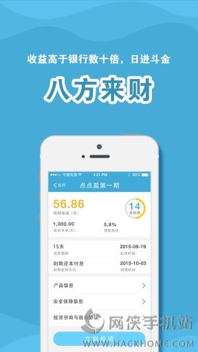 点点盈安卓版app是一款金融理财应用软件。这里有最信息全的理财资讯和优质的理财产品,为你提供最专业、全面的金融理财服务。安全、高效、有保障。点点盈理财,你值得信赖!