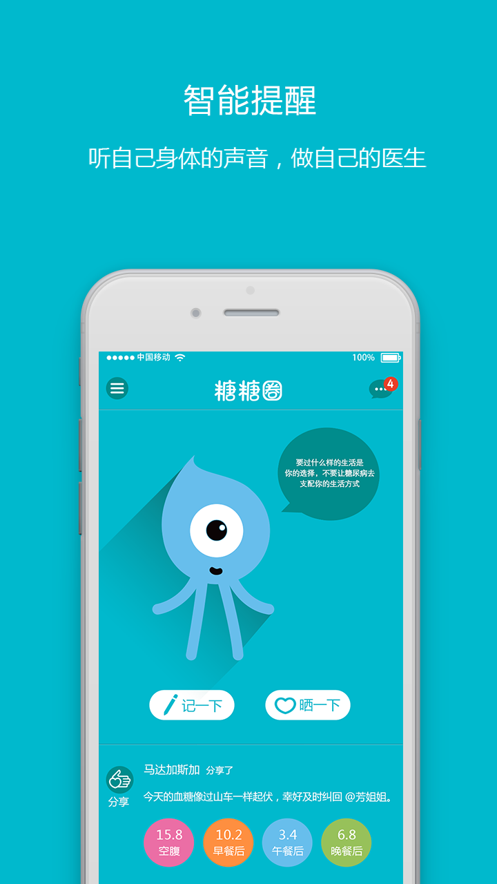 2、最贴心的自我管理工具----轻松记录血糖,精准跟踪每天血糖变化和胰岛素用量,实时监控数据,设定控糖目标,从而为你量身定制不同治疗方案。