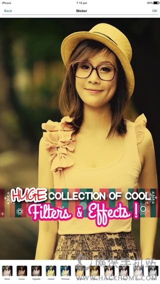 3、照片编辑工具如过滤器,效果,调整亮度,对比,饱和度,锐化,模糊焦点,旋转,调整大小,tonecurve作物,在照片上添加文字和贴纸;