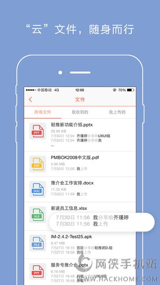 6、在轻推上用“云”的方式管理文件,随时随地用手机或电脑查看和分享。统一管理、类型不限、实时同步、快捷分享、安全无忧、永不丢失;