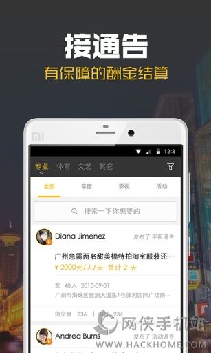 1、首席通告是一个有保障、专业的实时在线模特服务交易平台;