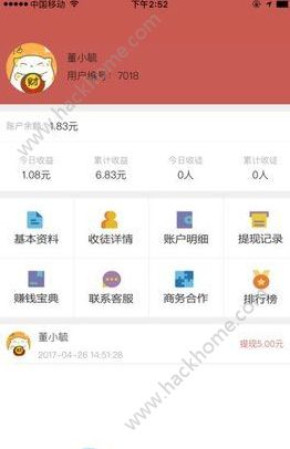 3.丰厚收益,便捷提现:微信提现,即时到账。