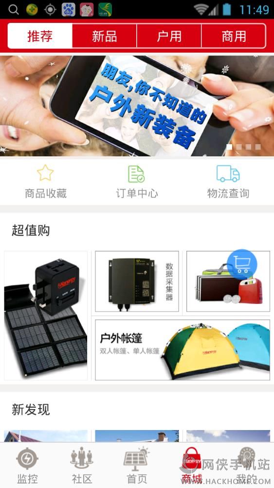 小能人户外旅游省电app安卓手机版是一款户外旅游的太阳能免费用电软件,包含太阳能产品商城、绿色环保社区互动、户用太阳能电站数据监控,实现环保节能。