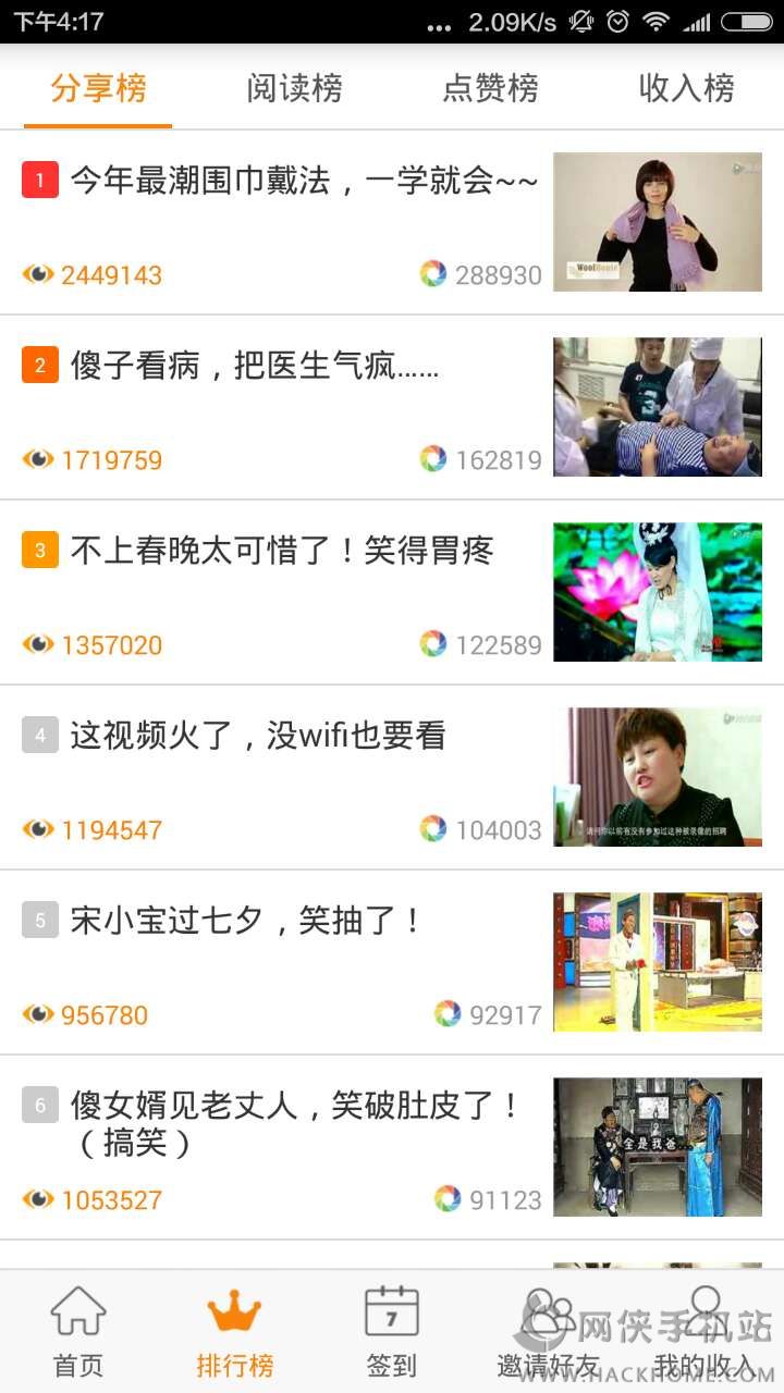 6、排行榜实时更新,分享榜,阅读榜,点赞榜,收入榜让您分享更有目标;
