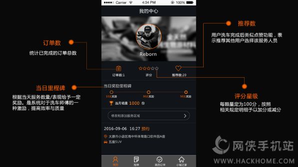 1、接单功能:下单成功后订单会自动推送到洗车师傅客户端,进行计时,当超过15分钟依然没有被接单的时候,系统会自动将订单派送到离您最近的洗车师傅