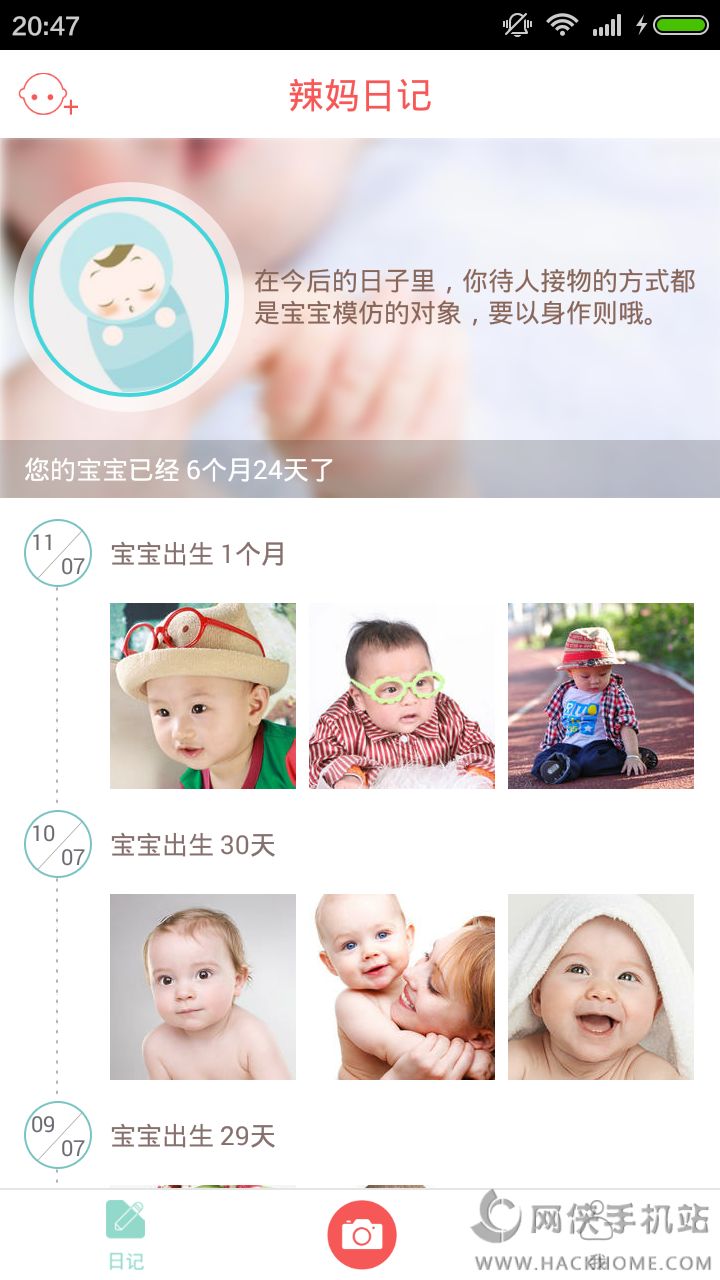 2、智能的宝宝相册:时光轴,您上传的照片和视频都将自动按时间生成时间轴,让你清晰的看到宝宝成长中的每一个脚印。云相册,一键上传照片,永久珍藏宝宝与你的照片。亲友分享,亲友无需在下载APP,通过辣妈日记微信公众号即可实时查看宝宝的最新动态;