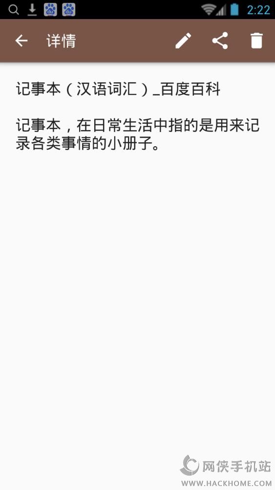 1、简单快捷的记事笔记应用。用户可以增加、编辑、删除笔记;