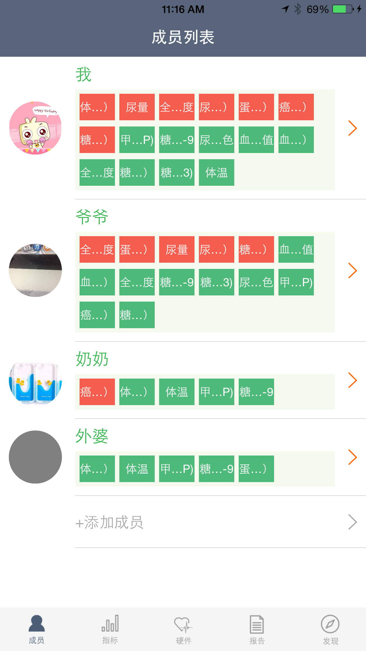 3、具备多成员管理、指标数据添加、查看、支持指标分组等功能。