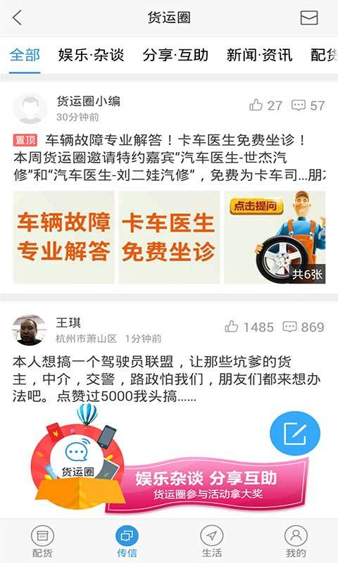 3、及时通讯:聊天交友,物流资讯,实时动态,分享互助等一切尽在货运圈,更有免费电话、短信、流量等福利哦;