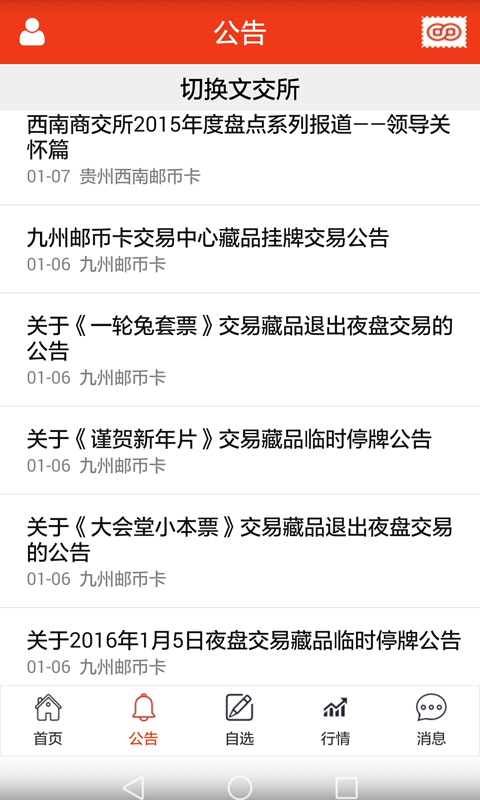 红邮2016手机版app:是一款为文交所邮币卡投资者打造的资讯服务客户端,每日推送文交市场最新资讯信息,让你一手掌握最全面的文交所邮币卡的市场行情。喜欢邮币卡投资的朋友快来下载吧!